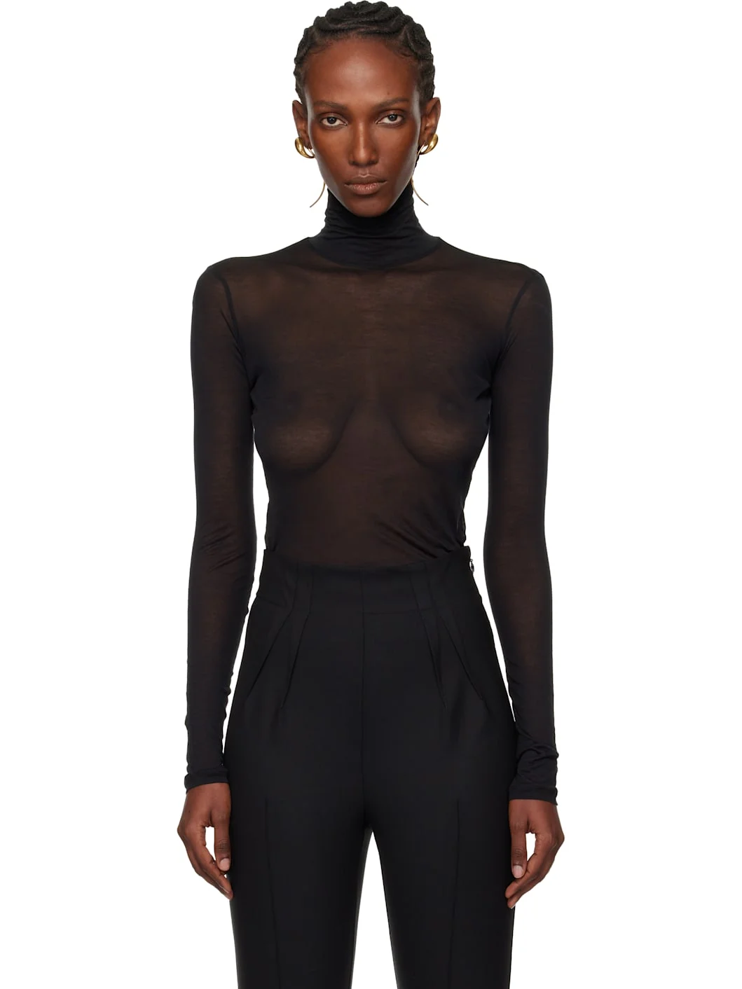 Lightweight lyocell- and silk-blend jersey top. · Sheer · Mock neck · Satin loop at back collar Supplier color: Black 90% lyocell, 10% silk. Made in Portugal 261345F110001