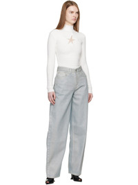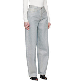 Foil-coated non-stretch denim jeans. · Fading throughout · Belt loops · Five-pocket styling · Button fly · Logo patch at back waistband · Lace-up fastening at back · Contrast stitching in tan Supplier color: Medium blue 100% cotton. Made in Italy 252345F069002