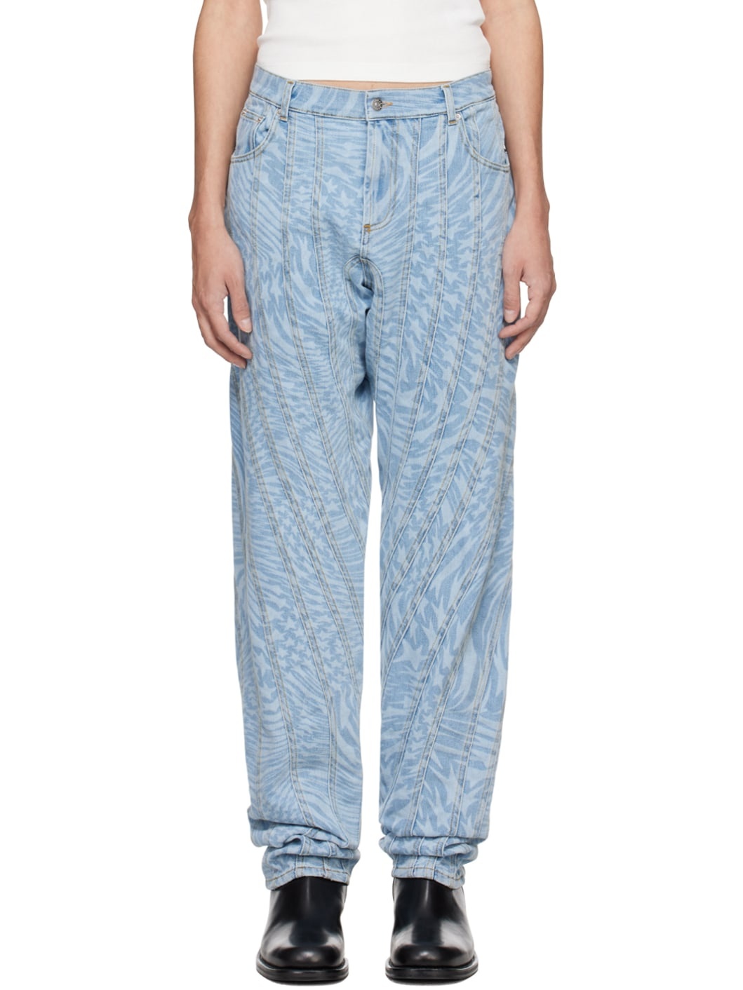 Loose-fit stretch denim jeans. Graphic pattern laser-printed throughout. · Paneled construction · Belt loops · Five-pocket styling · Zip-fly · Twisted outseams · Logo patch at back waistband · Logo-engraved silver-tone hardware · Contrast stitching in tan Supplier color: Laser printed star 72% cotton, 28% elastomultiester. Made in Italy 241345M186015