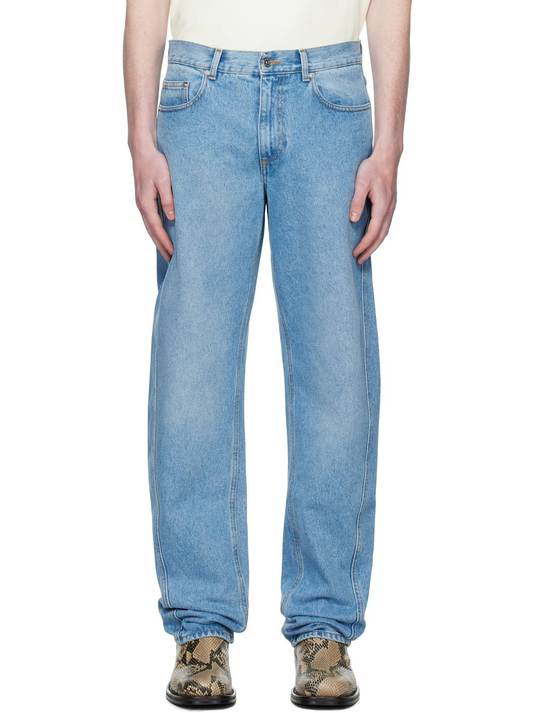 straight blue denim jeans