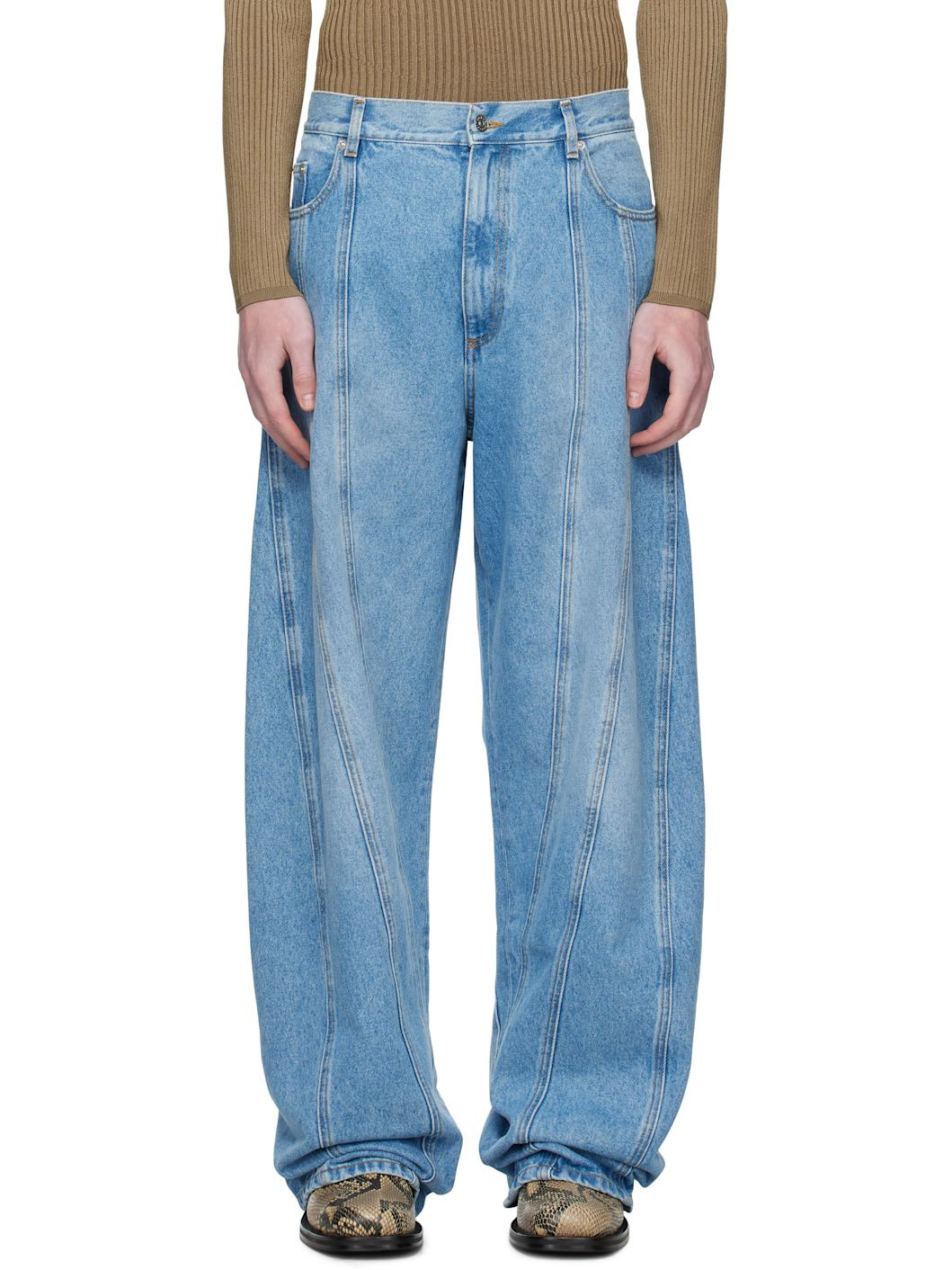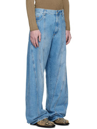 Non-stretch denim jeans. · Paneled construction with twisted outseams · Fading throughout · Wide-leg · High-rise · Belt loops · Five-pocket styling · Zip fly · Logo patch at back waistband · Logo-engraved silver-tone hardware · Contrast stitching in tan Supplier color: Medium Blue 100% cotton. Made in Italy 252345M186000