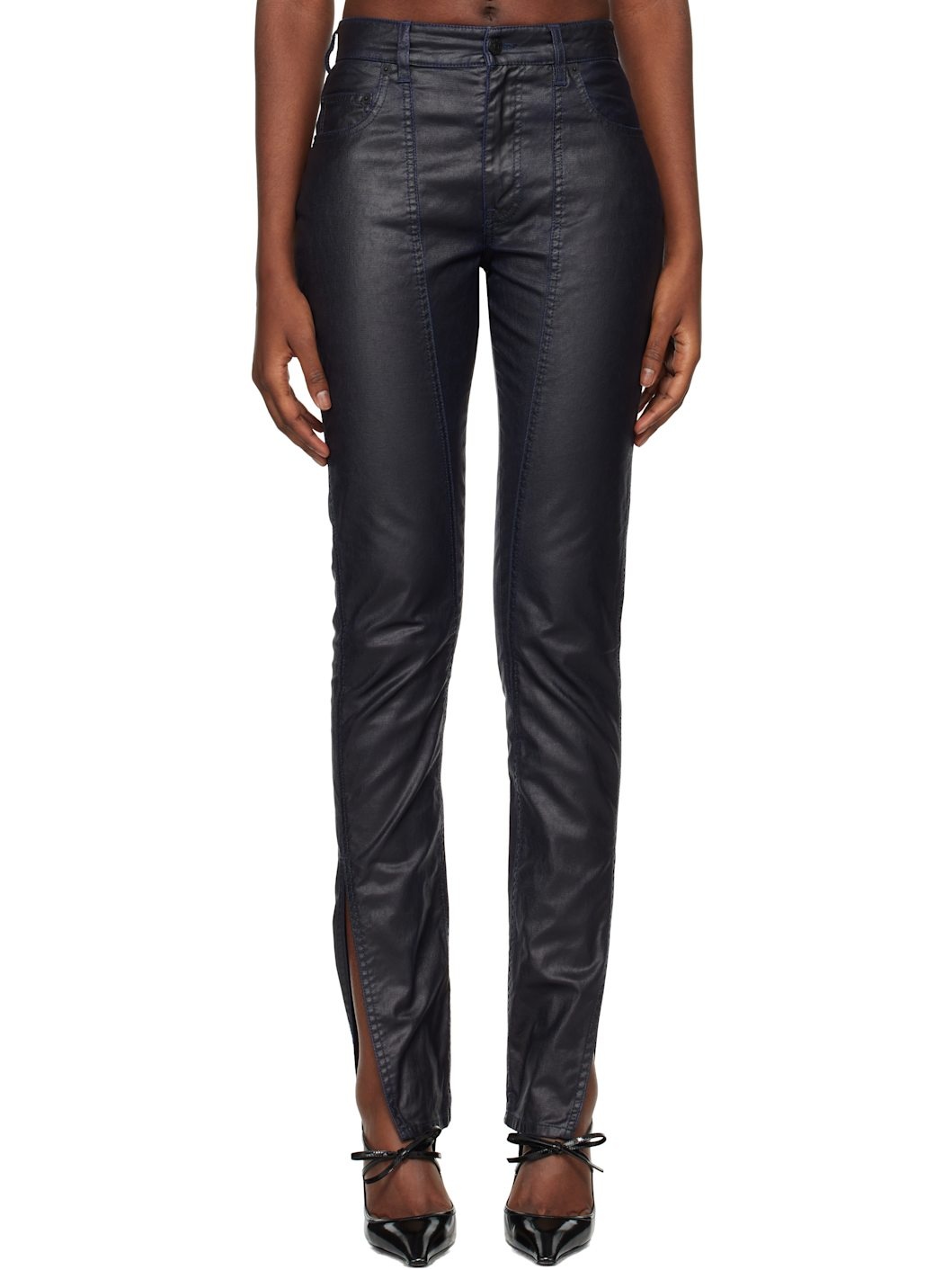 Skinny-fit waxed non-stretch denim jeans. · Paneled construction · Belt loops · Five-pocket styling · Zip-fly · Vent at cuffs · Leather logo patch at back waistband Supplier color: Midnight blue Body: 100% cotton. Lining: 80% polyester, 20% cotton. Made in Italy 242345F069018