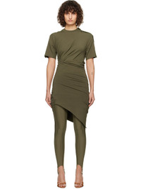 Stretch cotton jersey minidress. · Rib-knit crewneck · Hardware at shoulder · Ruching and draping at side seam · Asymmetrical hem Supplier color: Kaki 91% cotton, 9% elastane. Made in Portugal 251345F052002