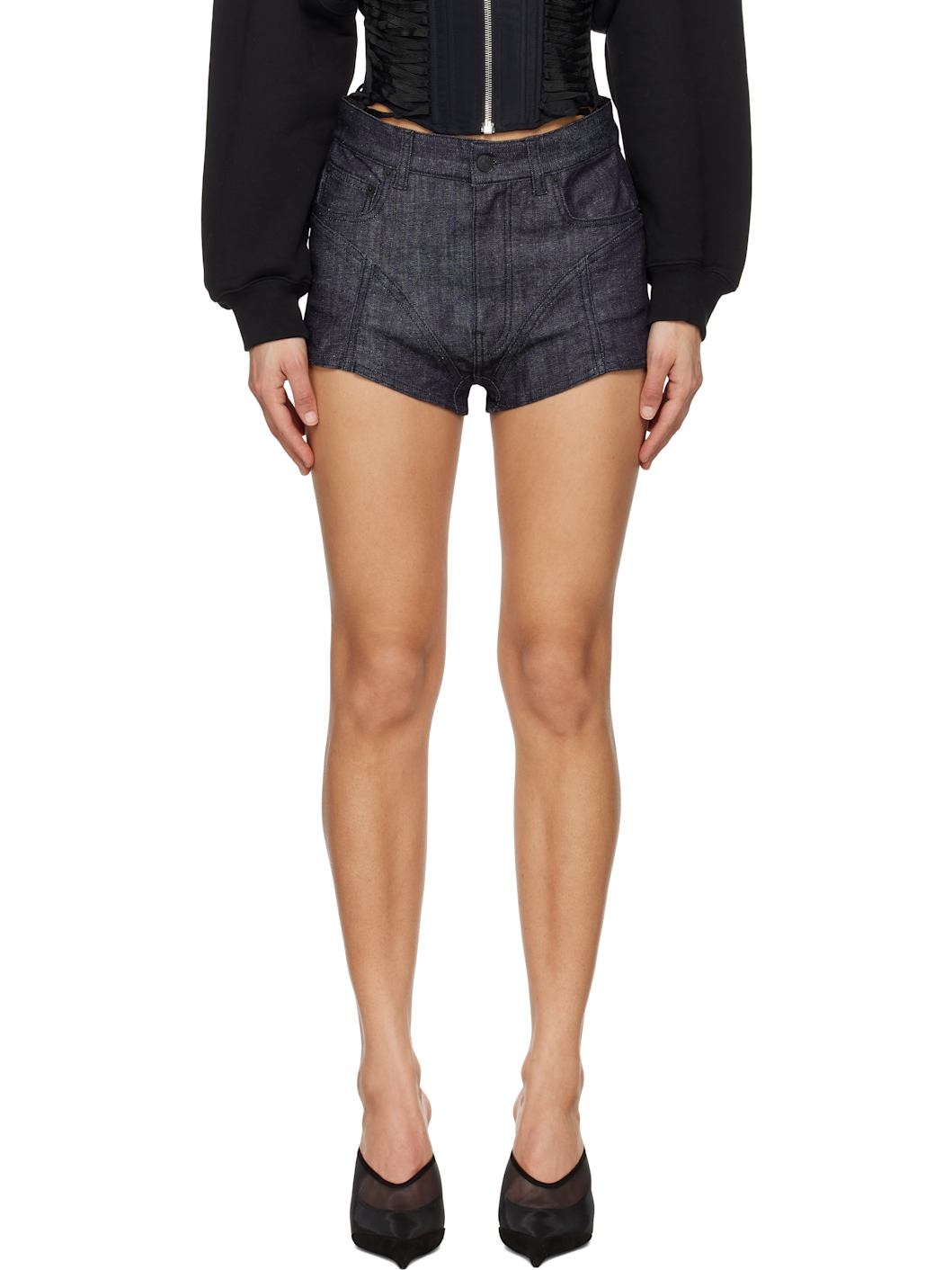 Navy Paneled Denim Shorts