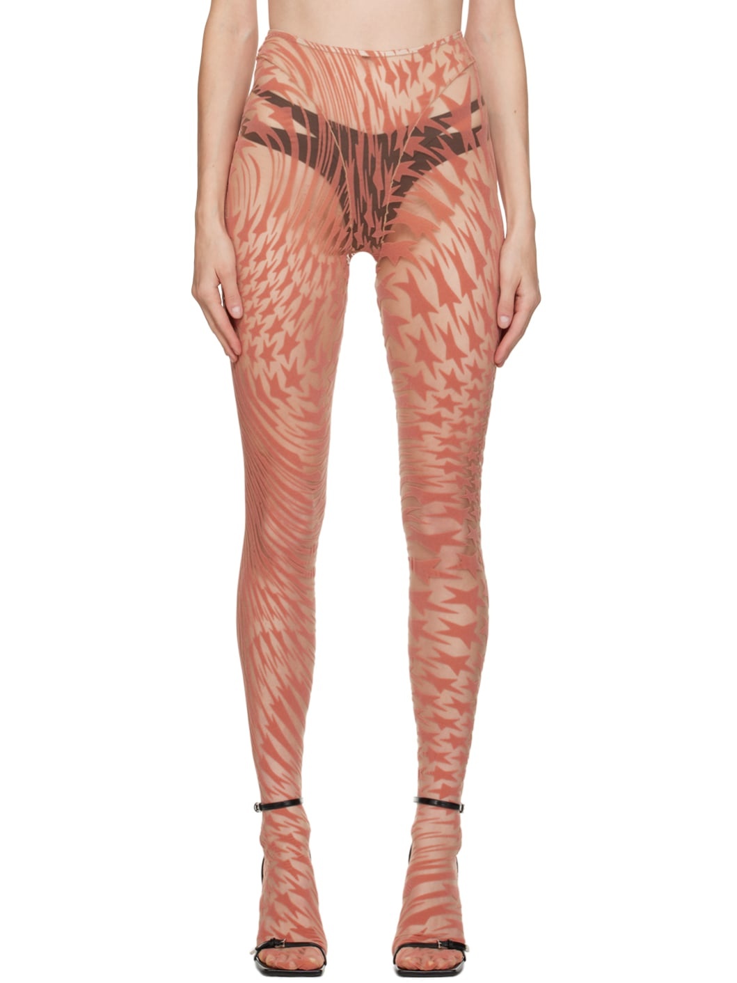 Stretch nylon tulle leggings. · Graphic pattern flocked throughout · Elasticized waistband Supplier color: Dark blush 94% polyamide, 6% elastane. Made in Portugal 241345F085016