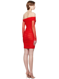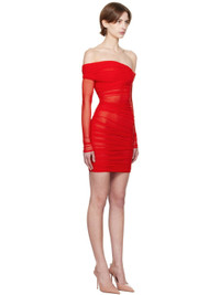 Semi-sheer stretch recycled nylon mesh minidress. Gathering throughout. · Off-the-shoulder construction · Foldover neck Supplier color: Red 94% recycled polyamide, 6% elastane. Made in Tunisia 251345F052007