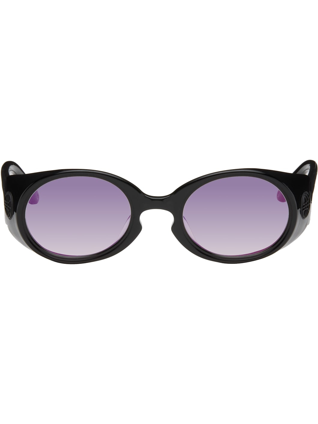 Oval shield-style acetate-frame sunglasses. · Pink-to-orange iridescent lenses · Integrated nose pads · Keyhole bridge · Logo at sides · Stainless steel core at temples · Eyewear-chain compatible tips · Pouch and presentation box included Supplier color: Euphoric Black Acetate. Made in Taiwan, China 252467M134000