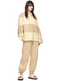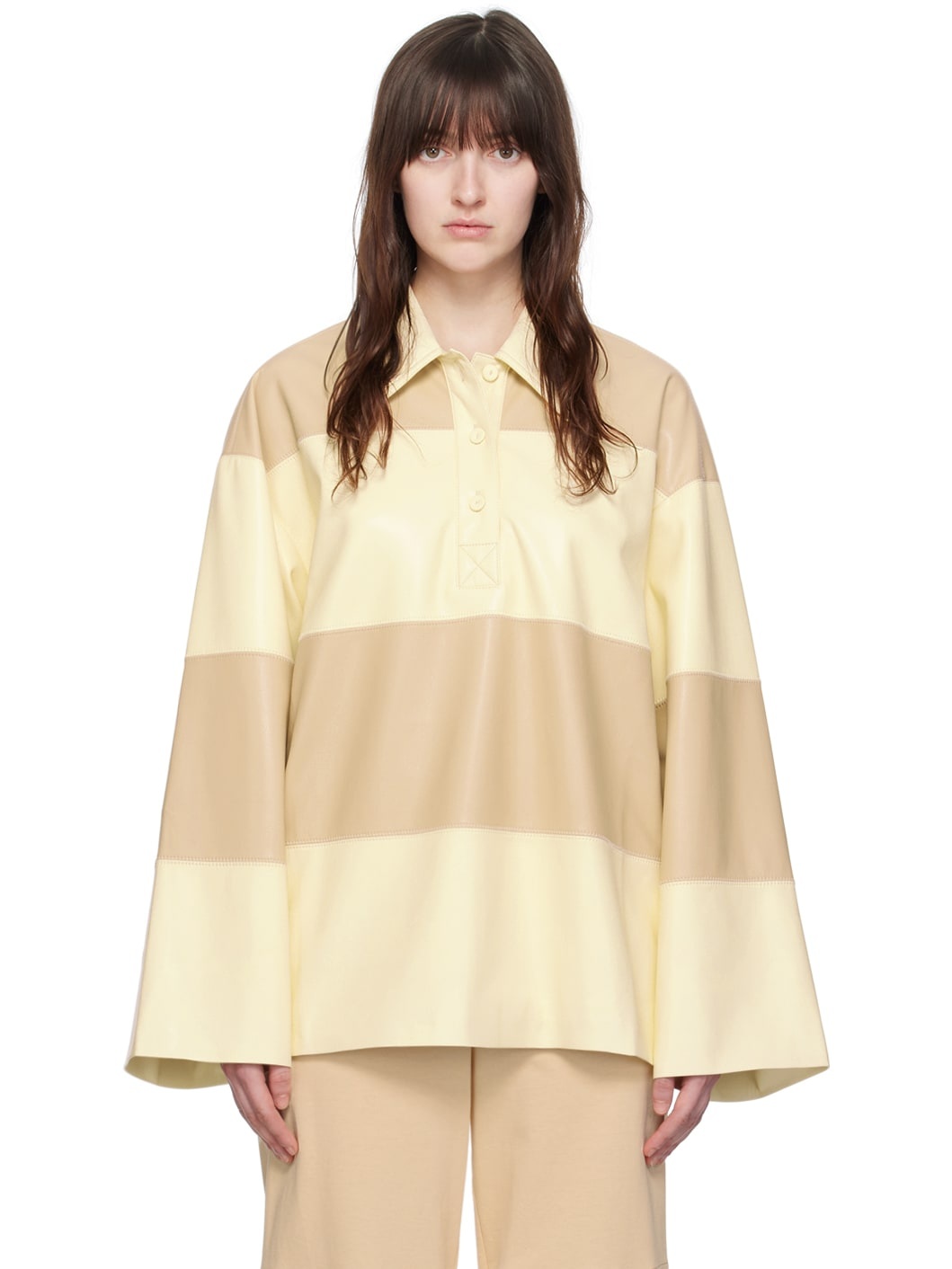 Deadstock OKOBOR™ grained vegan leather polo. · Paneled construction · Spread collar · Three-button placket · Button vent at side seams · Bell sleeves · Full viscose twill lining Supplier color: Eggshell/Vanilla Body: 100% polyester. Trim: 100% polyurethane. Lining: 100% viscose. Made in Hungary 241845F108000