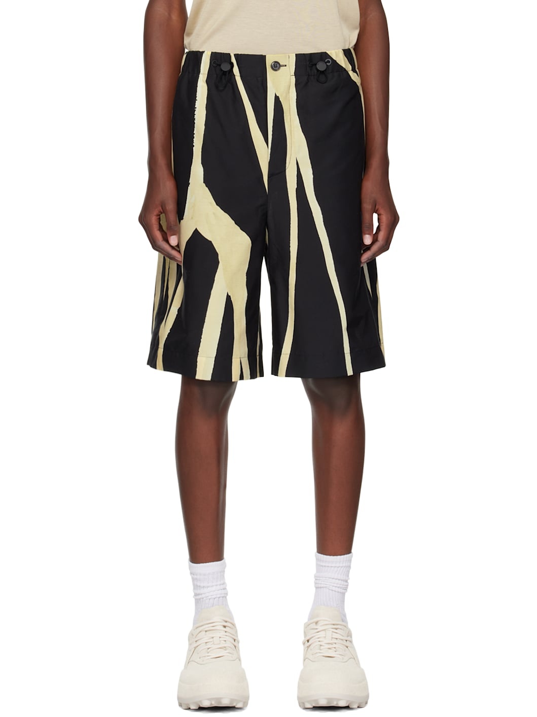 Lightweight silk- and viscose-blend poplin shorts. Graphic pattern throughout. · High-rise · Bungee-style drawstring at elasticized waistband · Four-pocket styling · Button-fly Supplier color: Multicolor Body: 70% viscose, 30% silk. Lining: 70% cotton, 30% polyamide. Made in Hungary 242845M193001