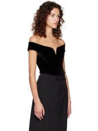 Stretch triacetate-blend velvet bodysuit. · Off-the-shoulder construction · Sweetheart neck · Press-stud fastening at bottom · Full jersey lining Supplier color: Black