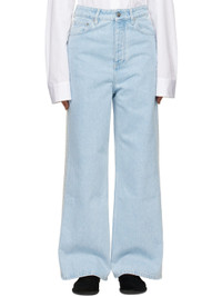 Loose-fit and wide-leg non-stretch organic cotton denim jeans. Fading throughout. · Low-rise · Belt loops · Five-pocket styling · Button-fly · Crocheted trim at outseams · Logo patch at back waistband · Logo embroidered at back pockets · Logo-engraved silver-tone hardware · Contrast stitching in beige Supplier color: Eco bleach/Creme Body: 100% cotton. Lining: 50% cotton, polyester. Made in Portugal 242845F069001