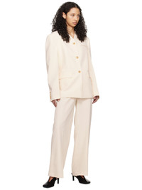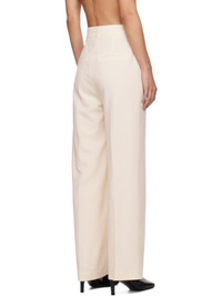 Wide-leg stretch polyester- and viscose-blend crepe trousers. · High-rise · Belt loops · Four-pocket styling · Zip-fly · Central crease at front and back Supplier color: Creme 68% polyester, 29% viscose, 3% elastane. Made in Hungary 241845F087005
