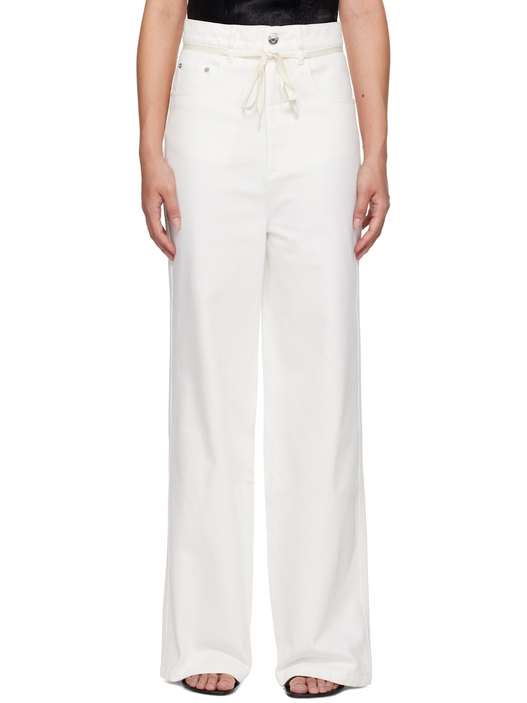 Wide-leg non-stretch denim jeans. · Belt loops and detachable self-tie belt · Five-pocket styling · Zip-fly · Logo patch at back waistband · Logo-engraved silver-tone hardware Supplier color: Off white 100% cotton. Made in Portugal 242845F069002
