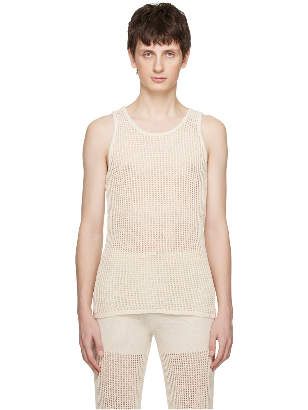 Open knit cotton-blend tank top. · Scoop neck · Unlined Supplier color: Off-white 78% cotton, 22% polyamide. Made in Hungary 231845M214005
