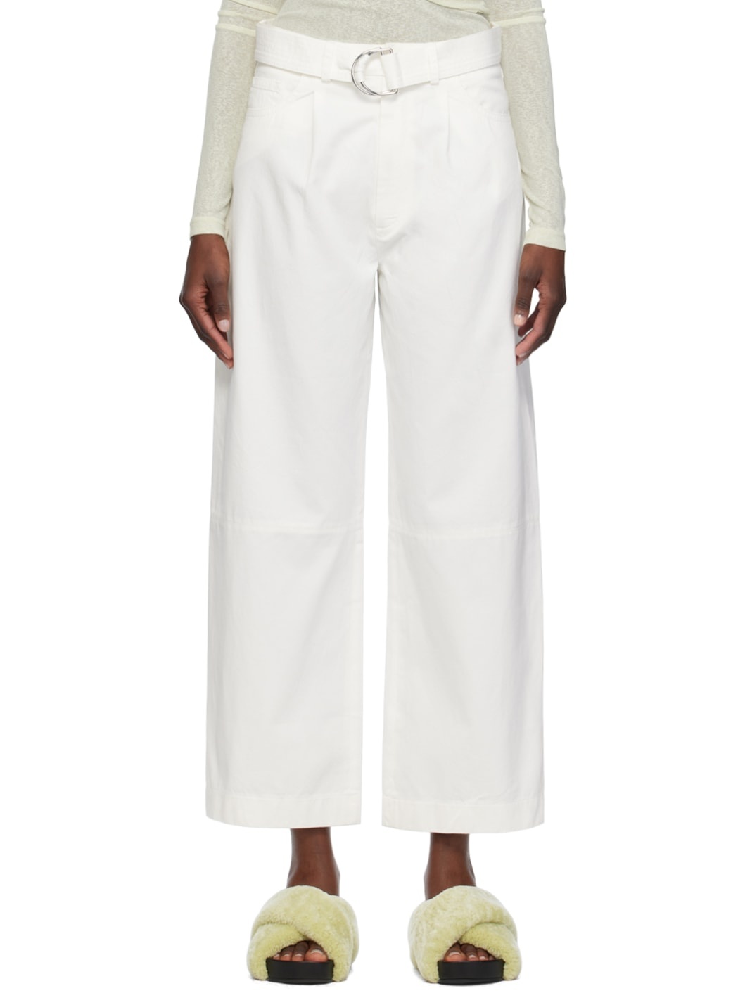Cotton twill trousers. · Belt loops · Detachable cinch belt at waistband · Five-pocket styling · Zip-fly Supplier color: White 100% cotton. Made in Hungary 241845F084000