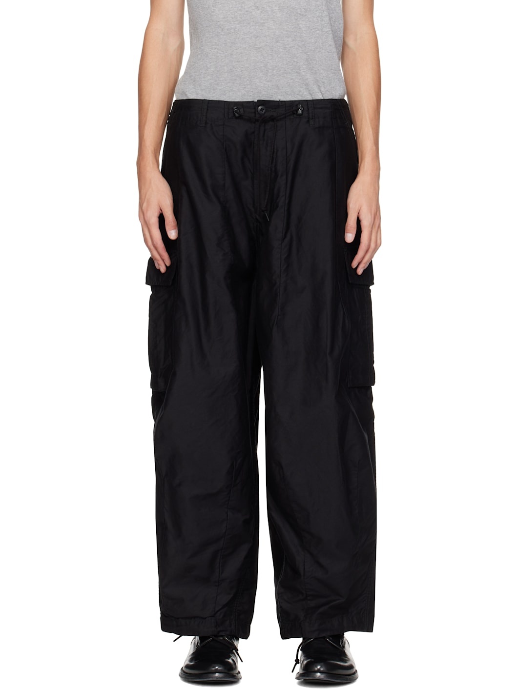 Cotton twill cargo pants. · Belt loops · Cord lock drawstring at waistband · Four-pocket styling · Zip-fly · Darts and drawstring at cuffs · Cargo pocket at outseams Supplier color: B-black 100% cotton. Made in Japan 242821M188000