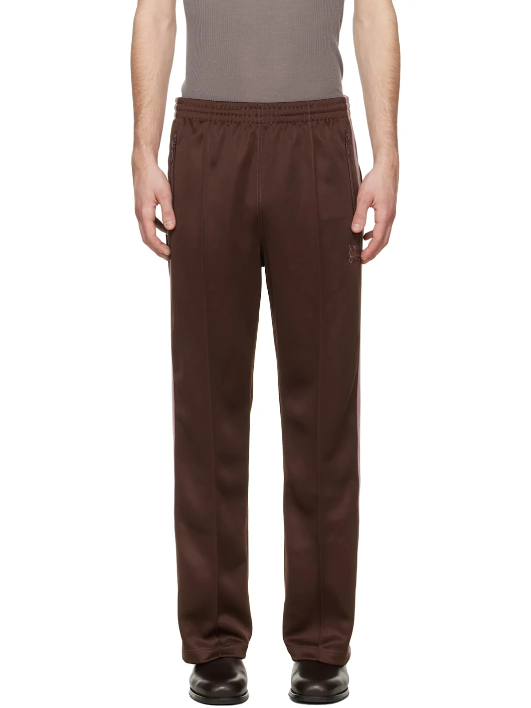 Jersey track pants. · Concealed drawstring at elasticized waistband · Three-pocket styling · Logo embroidered at front · Pinched seams at front legs · Striped knit trim at outseams Supplier color: Brown Body: 100% polyester. Trim: 100% rayon. Made in Japan 252821M190016