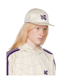 Jersey cap in off-white. · Graphic pattern printed throughout · Embroidered eyelets at crown · Logo embroidered at face · Flat brim · Mesh lining Part of the NEEDLES x DC collaboration. Supplier color: Ivory Body: 100% polyester. Lining: 100% polyester. Made in Japan 232821M139001