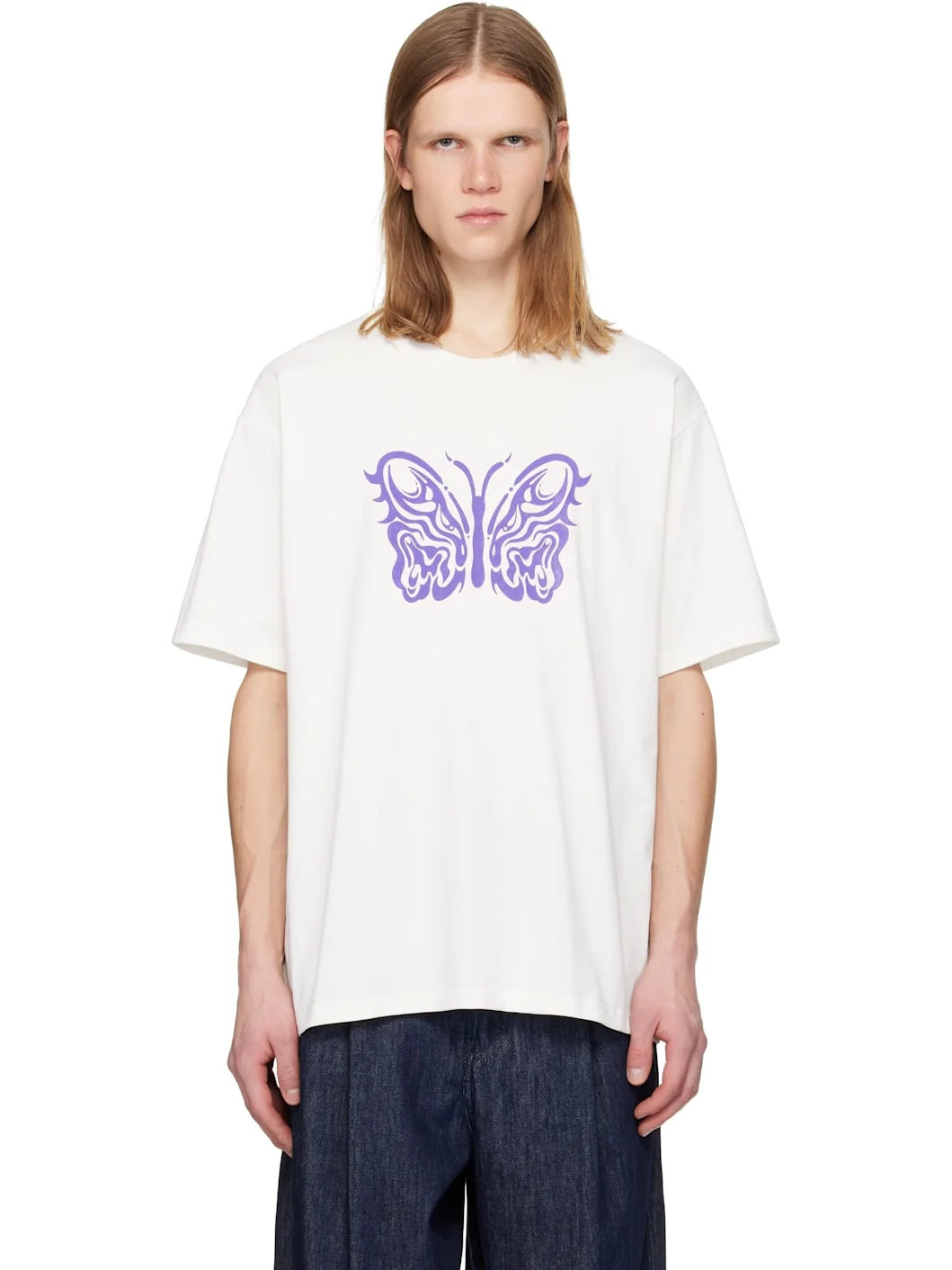 Jersey T-shirt. · Rib-knit crewneck · Logo printed at front Part of the Needles x Kae Tanaka collaboration. Supplier color: Off white Body: 100% polyester. Trim: 100% polyester. Made in Japan 251821M213001