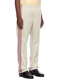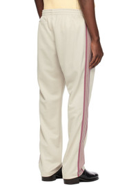 Polyester interlock jersey track pants. · Concealed drawstring at elasticized waistband · Three-pocket styling · Pinched seams and embroidered logo graphic at front · Striped knit trim at outseams Supplier color: Ivory Body: 100% polyester. Trim 1: 100% polyester. Trim 2: 100% rayon. Made in Japan 251821M190032