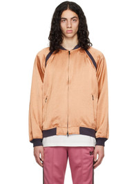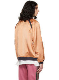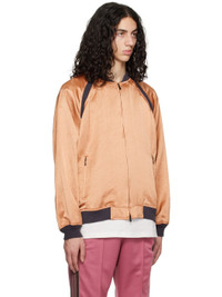 Triacetate- and linen-blend sateen bomber jacket. · Rib knit stand collar, hem, and cuffs · Zip closure · Zip pockets · Raglan sleeves · Satin lining Supplier color: Pink