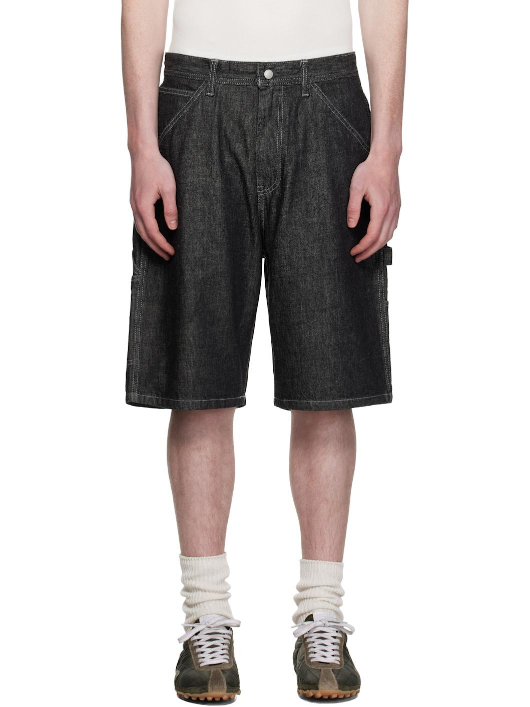 10 oz non-stretch denim shorts. · Fading throughout · Belt loops · Five-pocket styling · Zip fly · Hammer loop and patch pocket at outseam · Patch pockets at outseam · Logo patch at back waistband · Loop at back pocket · Logo-engraved antiqued silver-tone hardware · Contrast stitching in gray Supplier color: Black 100% cotton. Made in Japan 252019M193004