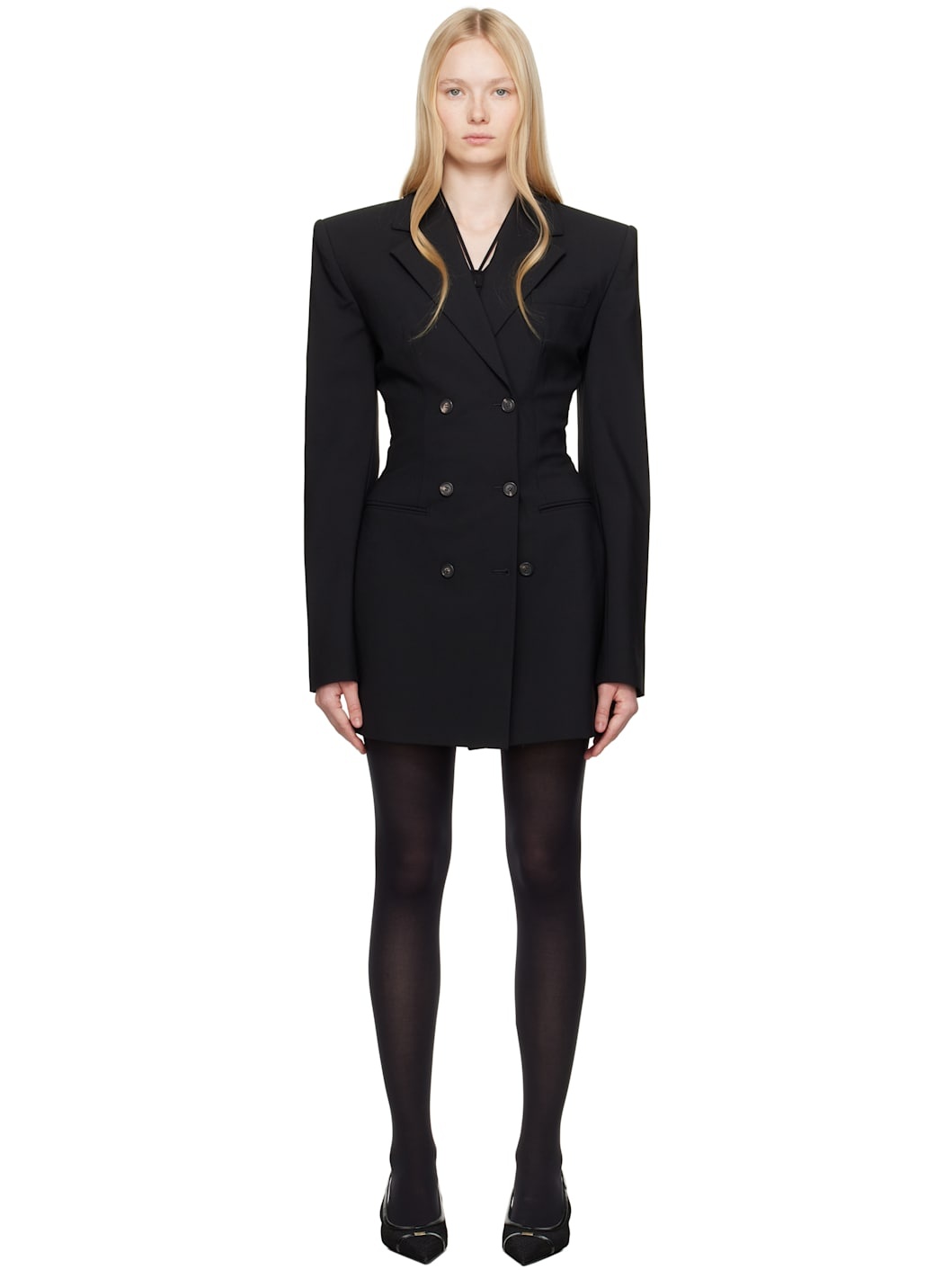 Plain-woven stretch polyester- and virgin wool-blend minidress. · Notched lapel · Double-breasted button closure · Welt pockets at front · Darts at front and back · Padded shoulders · Surgeon's cuffs · Full satin lining Supplier color: Black 53% polyester, 43% virgin wool, 4% elastane. Made in Italy 251334F052006