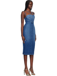 Non-stretch denim midi dress. Fading throughout. · Paneled construction · Modified square neck · Padded cups · Fixed spaghetti straps · Zip closure at back · Central vent at back hem · Contrast stitching in tan Supplier color: Blue denim 100% cotton. Made in Italy 251334F054000