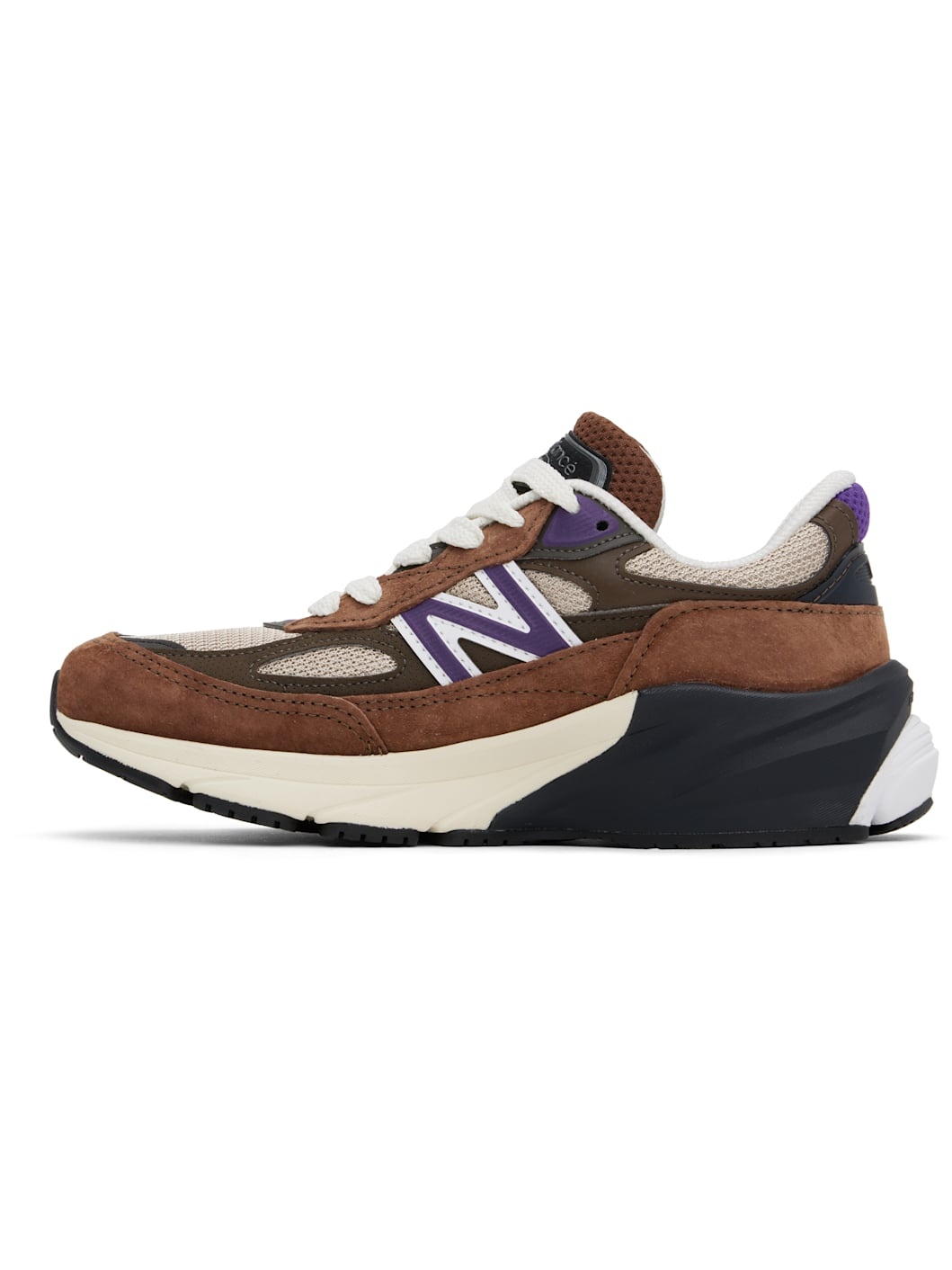 Low-top mesh, pigskin suede, and faux-leather sneakers in brown, beige, and purple. · Lace-up closure · Logo embossed at vamp · Logo patch at padded tongue · Padded collar · Reflective logo applique at sides · Logo-printed TPU tab at heel counter · Mesh lining · ENCAP® and FuelCell foam rubber midsole · Ndurance™ treaded rubber sole Supplier color: Rich oak/Cosmic grape