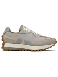 Low-top suede and buffed leather sneakers in gray. · Lace-up closure · Logo patch at padded tongue · Padded collar · Buffed leather logo at outer side · Logo printed at inner side · Mesh lining · Foam rubber midsole · Treaded rubber sole Supplier color: Arid stone/Dockside Upper: leather. Sole: rubber. Made in Indonesia 251402F128152