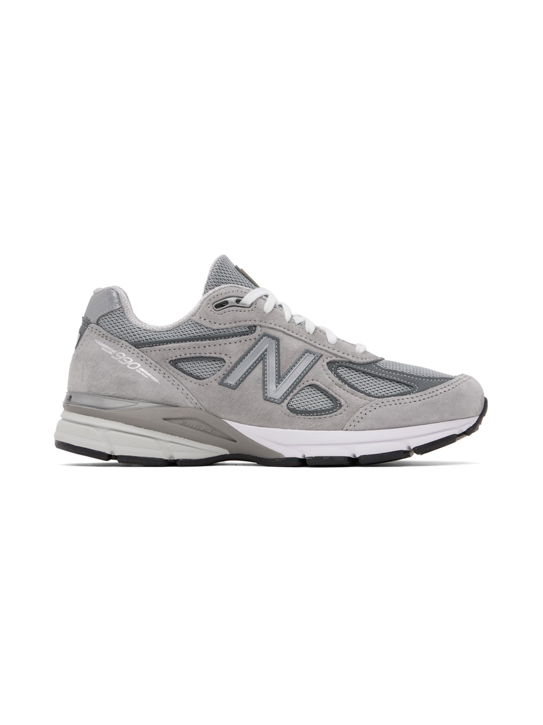 Low-top paneled pigskin suede and mesh sneakers in tones of gray. · Lace-up closure · Logo patch at padded tongue · Padded collar · Logo bonded at heel tab · Reflective logo applique at sides · Mesh lining · Textured ENCAP® rubber midsole · Treaded rubber outsole Supplier color: Grey Upper: pigskin, mesh. Sole: rubber. Made in United States 241402M237010