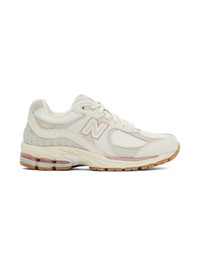 Low-top suede and mesh sneakers in white, pink, and gray. · Lace-up closure · Logo embroidered at vamp · Inset logo patch at padded tongue · Padded collar · Logo applique at sides · Logo embossed at heel counter · Perforated detailing at heel counter · Brushed jersey lining · ABZORB and SBS foam rubber midsole · Stability Web technology · Treaded N-ergy rubber sole Supplier color: Sea salt Upper: mesh, suede. Sole: rubber. Made in Viet Nam 242402F128128