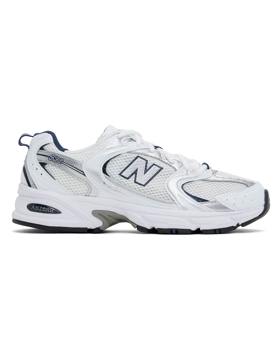 Low-top mesh and grained faux-leather sneakers in white and silver tone. · Logo embossed at toe and outer side · Lace-up closure · Logo patch at padded tongue · Padded collar · Logo applique at sides · Pull-loop at heel collar · Mesh lining · ABZORB SBS foam rubber midsole · ACTEVA LITE unit at foam midsole · Treaded rubber sole Supplier color: White Upper: textile, synthetic. Sole: rubber. Made in Viet Nam 251402M237107