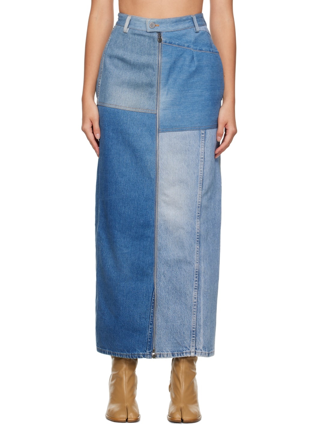 Non-stretch denim skirt. Fading throughout. · Paneled construction · Belt loops · Four-pocket styling · Zip closure at front and back · Contrast stitching in tan Supplier color: Blue 100% cotton. Made in Italy 232744F093001