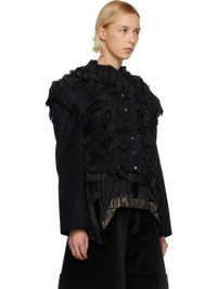Wool-blend melton jacket. · Fringed chiffon trim with raw edges throughout · Crewneck · Press-stud closure · Padded shoulders · Full satin lining Supplier color: Black/Black Body: 70% wool, 22% polyamide, 5% cashmere. Trim: 100% polyester. Lining: 100% polyester. Made in Lithuania 252126F063006