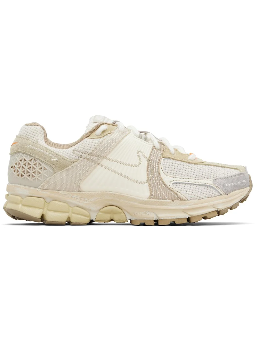 Low-top mesh sneakers. · Lace-up closure · Logo patch at padded tongue · Padded collar · Swoosh applique at sides · Rubber overlay at sides and heel counter · Swoosh embroidered at heel tab · Zoom Air unit at foam rubber midsole · Treaded rubber sole Please note that this item may be shipped only within North America. Supplier color: Muslin/Pale Ivory/College Grey/Sail Upper: textile. Sole: rubber. Made in British Indian Ocean Territory 261011M237025