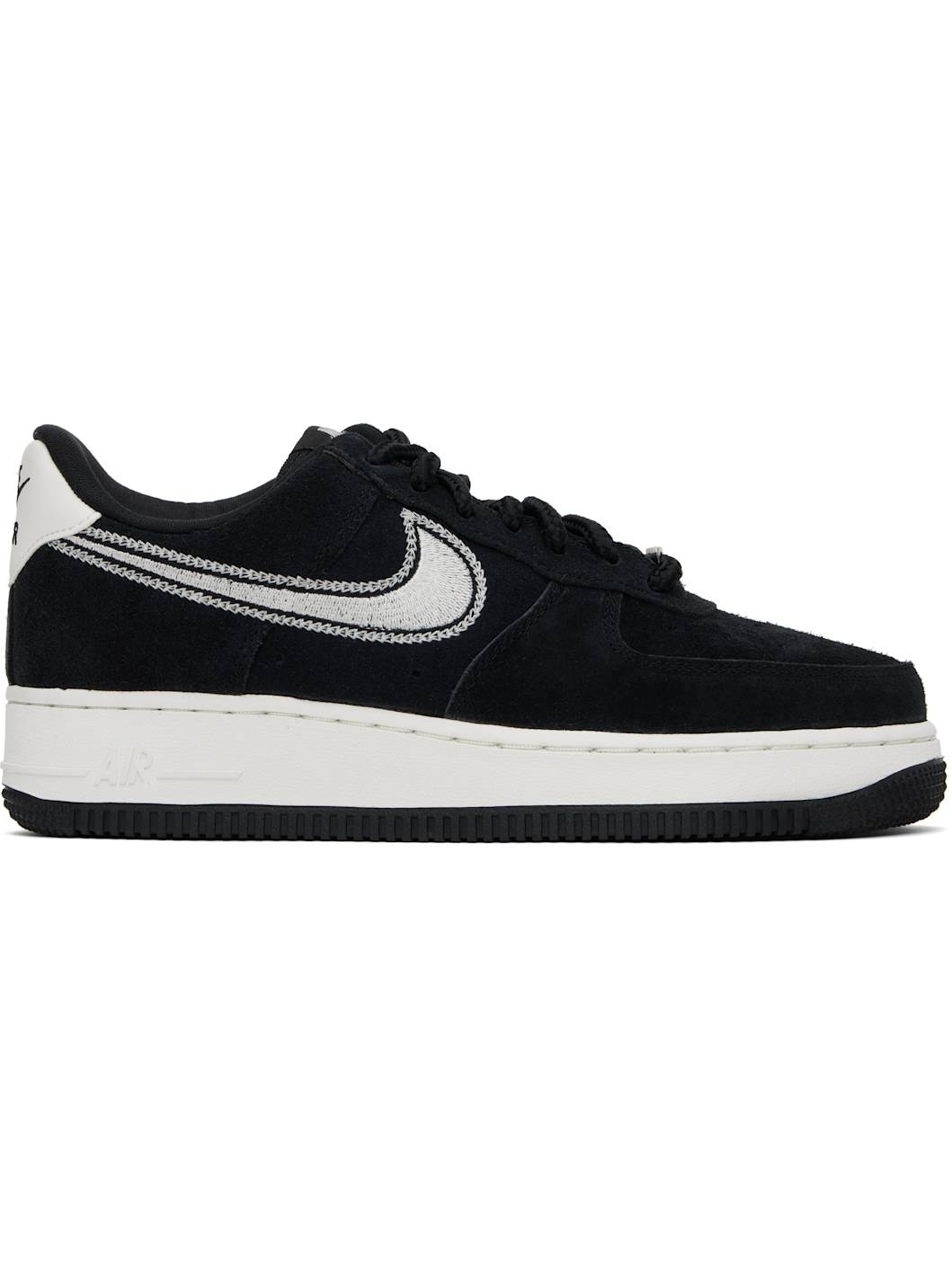 Low-top suede sneakers in black. · Perforated detailing at toe · Logo plaque at lace-up closure · Logo patch at padded tongue · Padded collar · Swoosh embroidered at sides · Logo embroidered at heel tab · Jersey lining · Treaded rubber sole Please note that this item may be shipped only within North America. Supplier color: Black/Sail Upper: leather. Sole: rubber. Made in Indonesia 251011M237151