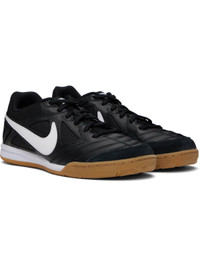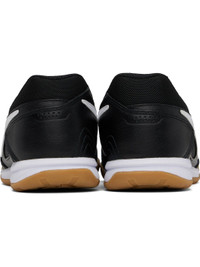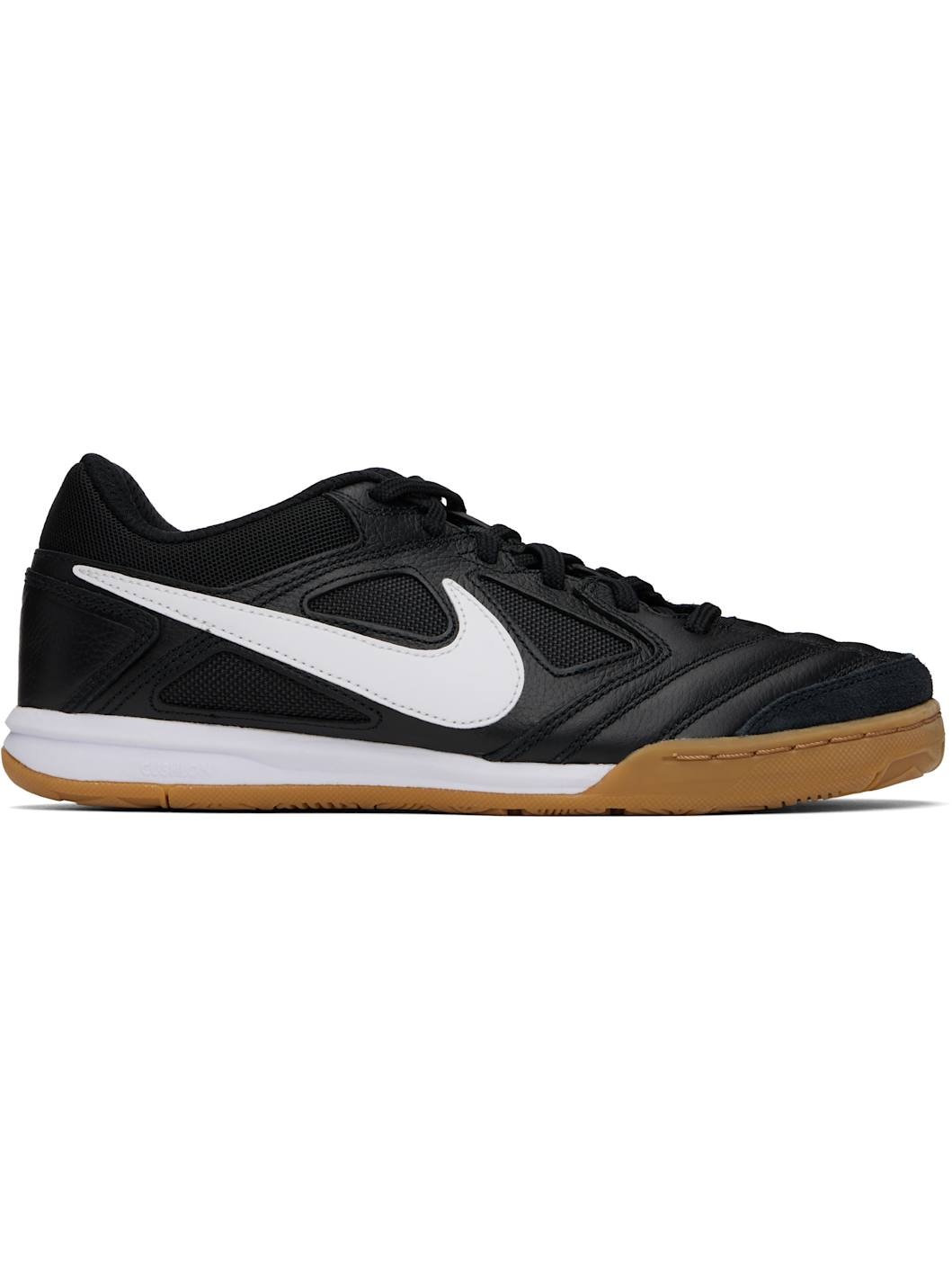 Low-top grained leather and canvas sneakers in black. · Suede trim at toe · Lace-up closure · Logo patch at padded tongue · Padded collar · Swoosh applique at sides · Mesh lining · Treaded rubber sole Please note that this item may be shipped only within North America. Supplier color: Black/Gum light brown/White Upper: leather, textile. Sole: rubber. Made in Indonesia 251011M237135
