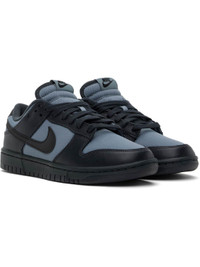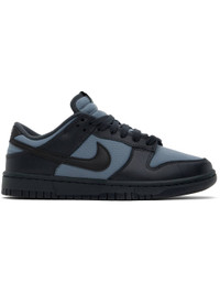 Low-top water-resistant buffed leather and ripstop sneakers in black and gray. · Lace-up closure · Logo patch at quilted tongue · Padded tongue and collar · Swoosh applique at sides · Logo stamp at heel tab · Quilted heel counter · Mesh lining · Foam rubber midsole · Treaded rubber sole · Includes alternate laces in gray Please note that this item may be shipped only within North America. Supplier color: Off-noir/Smoke grey/Anthracite/Black Upper: leather, textile. Sole: rubber. Made in Viet Nam 251011M237051