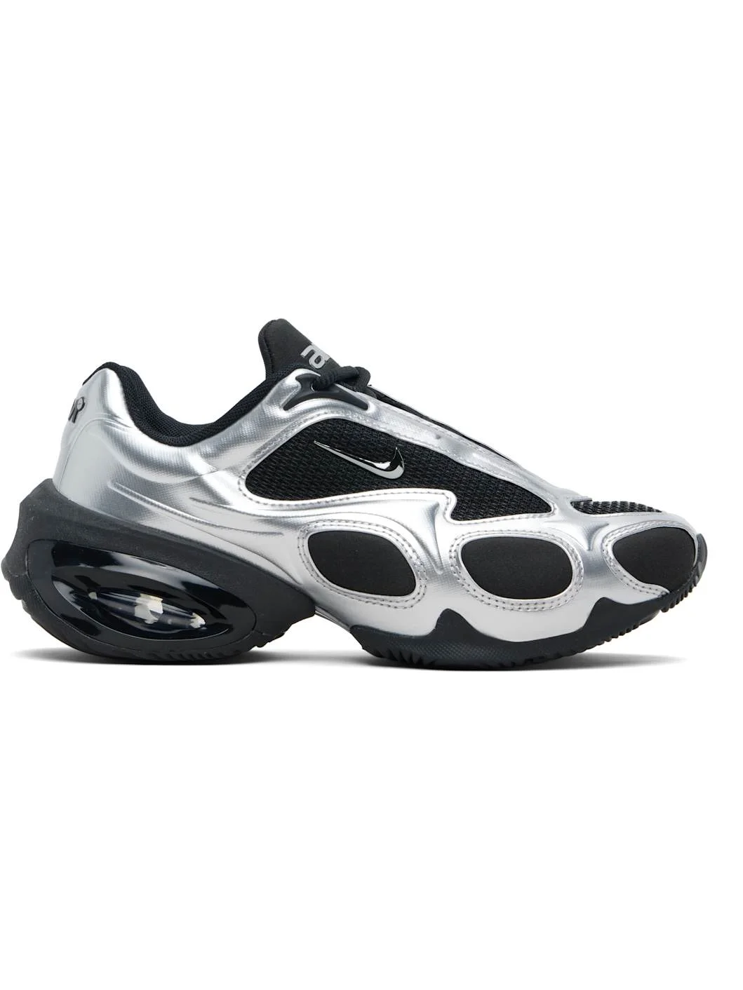 Low-top textured faux-leather and mesh sneakers. · Lace-up closure · Text bonded at padded tongue and heel tab · Padded collar · Swoosh bonded at sides · Mesh lining · Treaded rubber sole Please note that this item may be shipped only within North America. Supplier color: Black/Metallic silver Upper: textile, synthetic. Sole: rubber. Made in Viet Nam 261011F128068