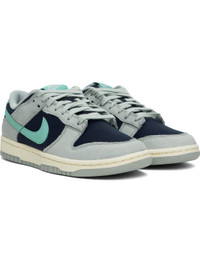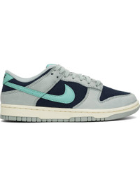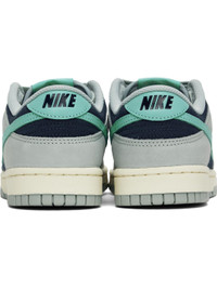 Low-top paneled non-stretch denim and suede sneakers in tones of blue. · Lace-up closure · Logo patch at tongue · Padded collar · Swoosh applique at sides · Logo embossed at heel tab · Mesh lining · Treaded rubber sole Please note that this item may be shipped only within North America. Supplier color: Light pumice/Dark obsidian/Coconut milk/Green frost Upper: textile, leather. Sole: rubber. Made in Viet Nam 251011M237080