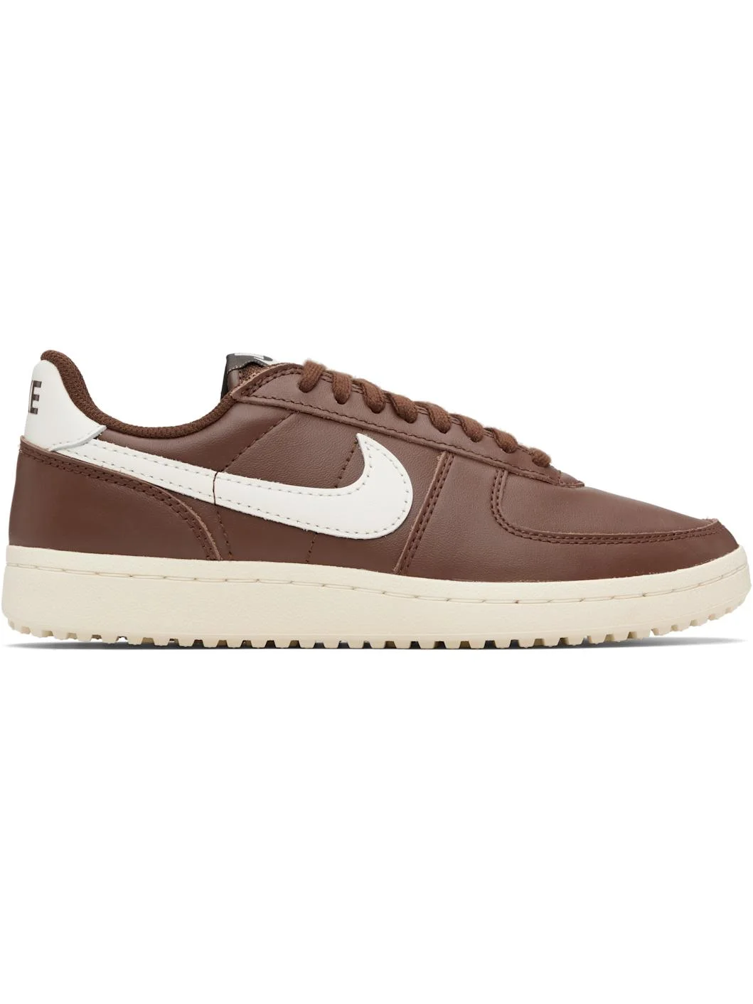 Low-top buffed leather and faux-leather sneakers. · Lace-up closure · Logo patch at padded tongue · Padded collar · Swoosh applique at sides · Logo printed at heel tab · Mesh lining · Foam rubber midsole · Treaded rubber sole Please note that this item may be shipped only within North America. Supplier color: Cacao wow/Cacao wow/Sail/Sail Upper: leather, synthetic. Sole: rubber. Made in Viet Nam 252011M237194