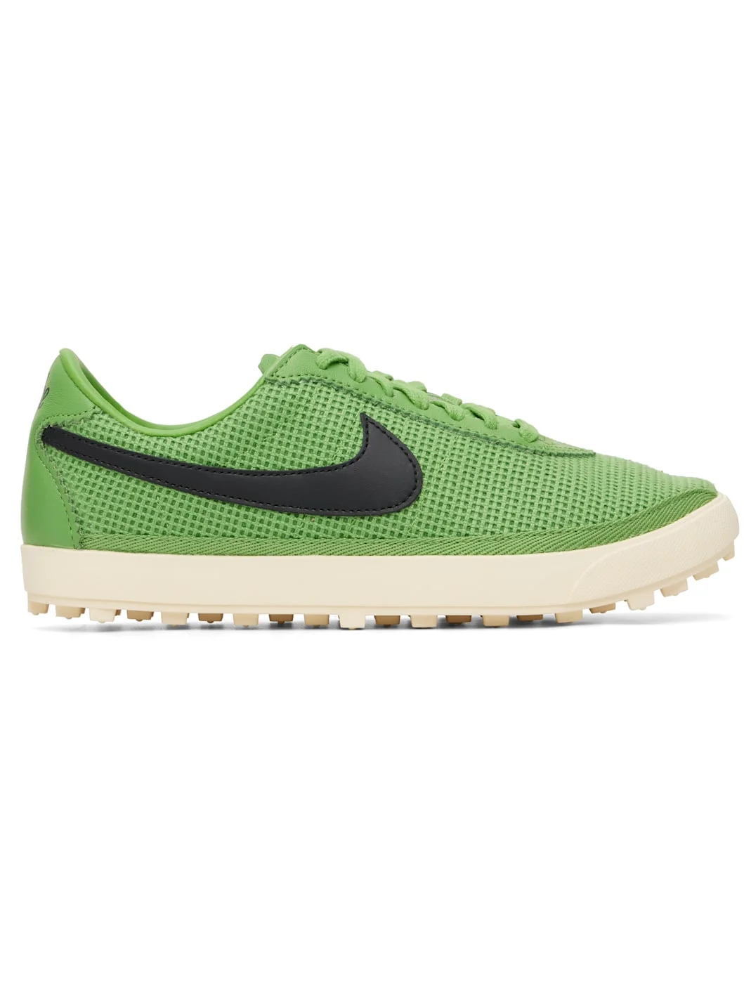 Low-top mesh sneakers. · Serrated edges throughout · Lace-up closure · Logo patch at padded tongue · Padded collar · Swoosh applique at sides · Logo printed at heel tab · Foam rubber midsole · Treaded rubber sole Please note that this item may be shipped only within North America. Supplier color: Chlorophyll/Muslin/Black Upper: textile. Sole: rubber. Made in Indonesia 261011F128142