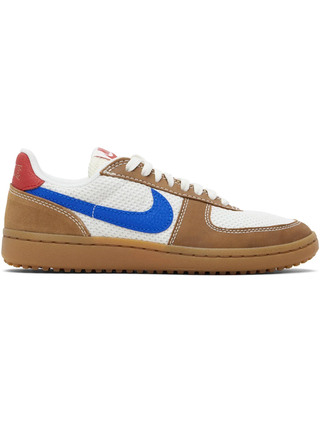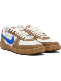 Low-top nubuck and mesh sneakers. · Lace-up closure · Logo patch at padded tongue · Swoosh applique at sides · Logo stamp at heel tab · Treaded rubber sole · Contrast stitching in white Please note that this item may be shipped only within North America. Supplier color: Phantom/Light tan/University red/Game royal/Culture of football Upper: textile, leather. Sole: rubber. Made in Viet Nam 252011M237196