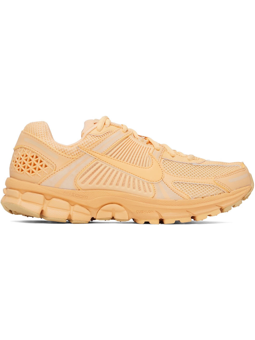 Low-top mesh and buffed faux-leather sneakers in orange. · Reflective trim throughout · Lace-up closure · Logo patch at padded tongue · Padded collar · Rubberized overlay at sides and heel · Swoosh applique at sides · Swoosh printed at heel tab · Mesh lining · Zoom Air cushioning at foam rubber midsole · Treaded rubber sole Please note that this item may only be shipped within North America. Supplier color: Celestial gold/Celestial gold Upper: textile. Sole: rubber. Made in Indonesia 251011M237035