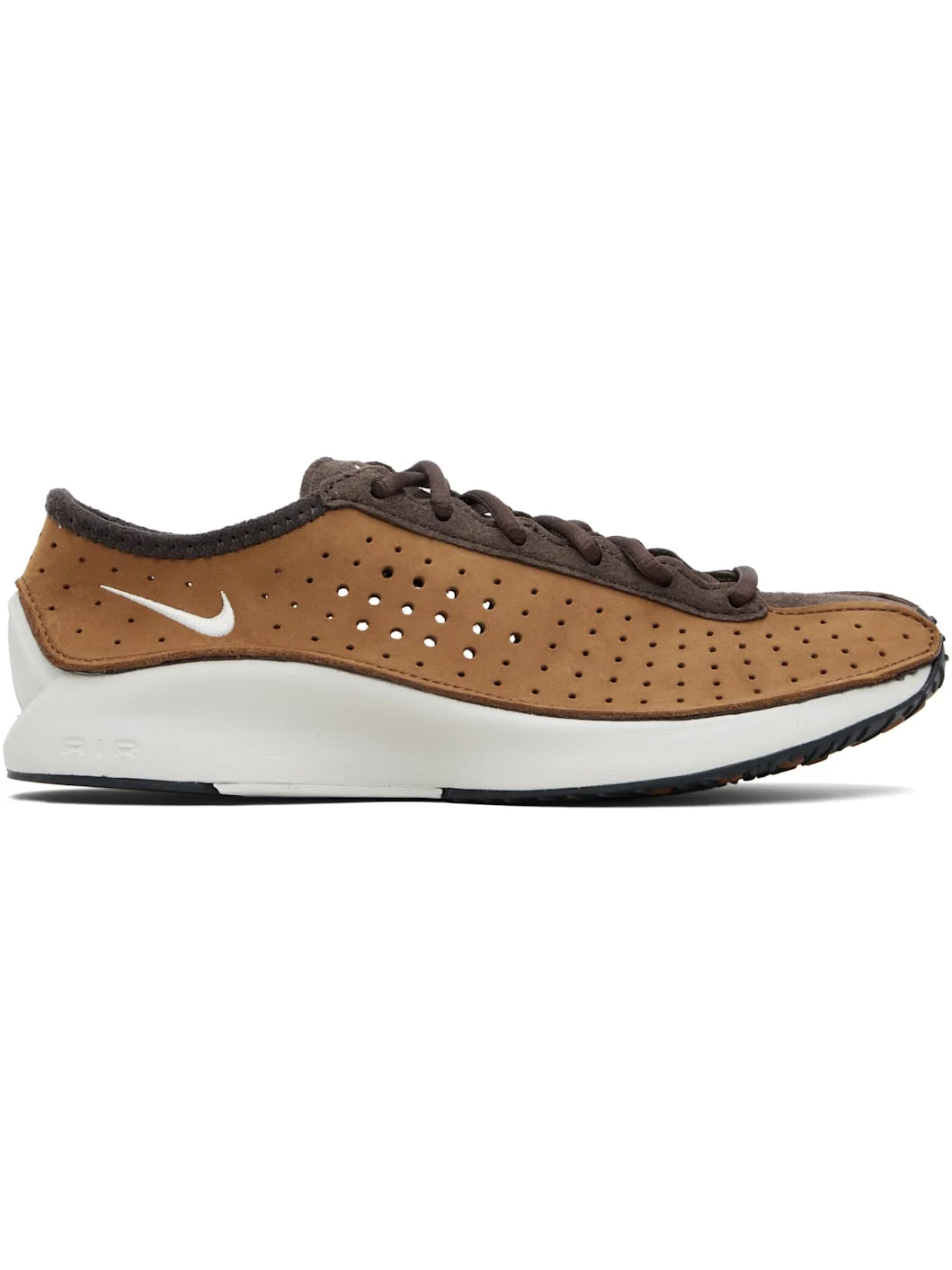 Low-top nubuck and suede sneakers. · Perforated detailing throughout · Lace-up closure · Logo bonded at padded tongue · Swoosh embroidered at outer side · Logo printed at heel tab · Mesh lining · Treaded rubber sole Please note that this item may be shipped only within North America. Supplier color: Light British tan/Baroque brown/Black/Light bone Upper: leather. Sole: rubber. Made in Viet Nam 261011F128054