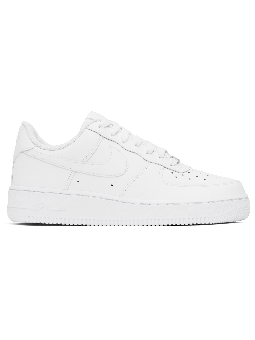 Low-top textured leather sneakers in white. · Perforations at toe and sides · Logo plaque at lace-up closure · Logo flag at padded tongue · Padded collar · Swoosh applique at sides · Logo embroidered at heel tab · Mesh lining · Air Sole unit at midsole · Treaded rubber sole Please note that this item may be shipped only within North America. Supplier color: White/White Upper: leather. Sole: rubber. Made in India 251011M237170