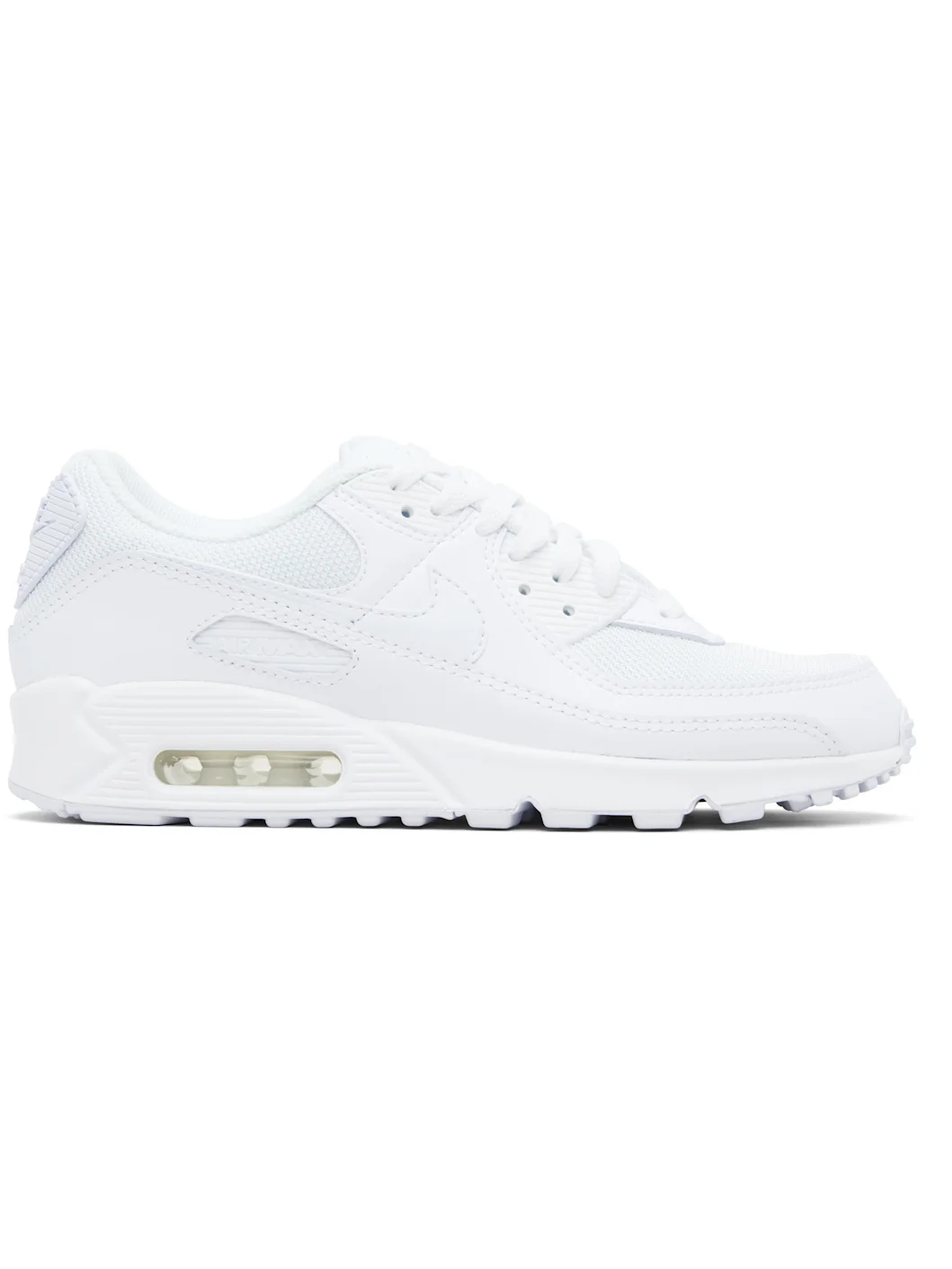 Low-top buffed faux-leather and mesh sneakers. · Lace-up closure · Logo patch at tongue · Padded tongue and collar · Swoosh applique at sides · Logo embossed at heel tab · Mesh lining · Max Air unit at foam rubber midsole · Treaded rubber sole Please note that this item may be shipped only within North America. Supplier color: White/White/Wolf grey/White/Triple white Upper: textile, synthetic. Sole: rubber. Made in Viet Nam 252011M237232
