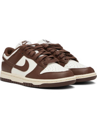 Low-top buffed leather sneakers. · Perforations at toe · Lace-up closure · Logo patch at padded tongue · Padded collar · Swoosh applique at sides · Logo embroidered at heel tab · Mesh lining · Foam rubber midsole · Treaded rubber sole Please note that this item may be shipped only within North America. Supplier color: Sail/Coconut milk/Cacao wow Upper: leather. Sole: rubber. Made in Viet Nam 252011F128182