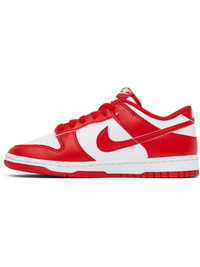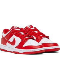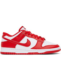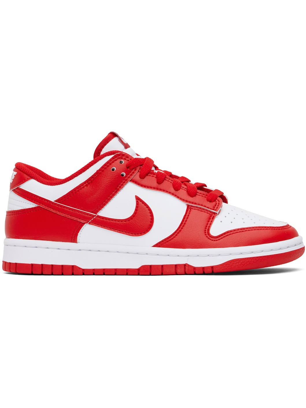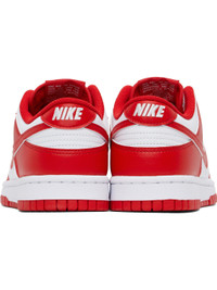 Low-top buffed leather and faux-leather sneakers in white and red. · Perforated detailing at toe · Lace-up closure · Logo patch at padded tongue · Padded collar · Swoosh applique at sides · Logo embroidered at heel tab · Mesh lining · Treaded rubber sole Please note that this item may be shipped only within North America. Supplier color: White/White/University red Upper: leather, synthetic. Sole: rubber. Made in Viet Nam 251011M237157